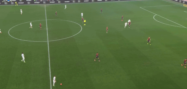 第68分鐘,熱那亞長傳發(fā)動反擊,維蒂尼亞抓住機會破門,1-2!