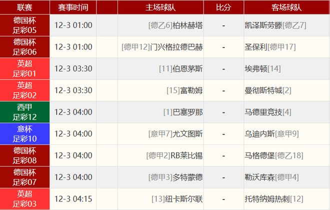 其他賽事比分: